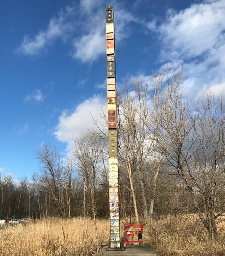 This 38 filing cabinet drawers and 40 feet high tower was created by Bren Alvarez in 2002. It was designed as a monument to the failures of bureaucracy after 38 years of delays in the creation of the southern connector. Originally proposed in 1965, the southern connector is still unfinished today.